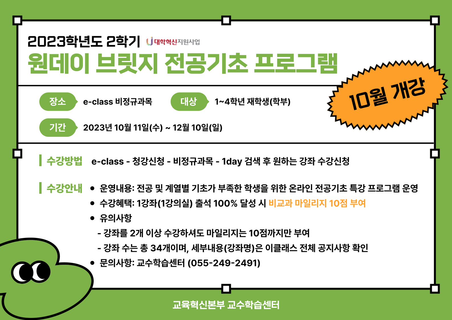 [교수학습센터] 2023학년도 2학기 원데이 브릿지 전공기초 프로그램 운영 안내