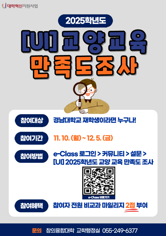 3. 참여방법: e-Class > 커뮤니티 > 설문 > [UI] 2025학년도 교양 교육 만족도 조사